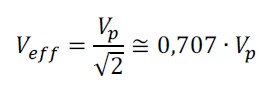 Valore massimo (Vp) e valore efficace (Veff) sono legati dalla presente relazione: